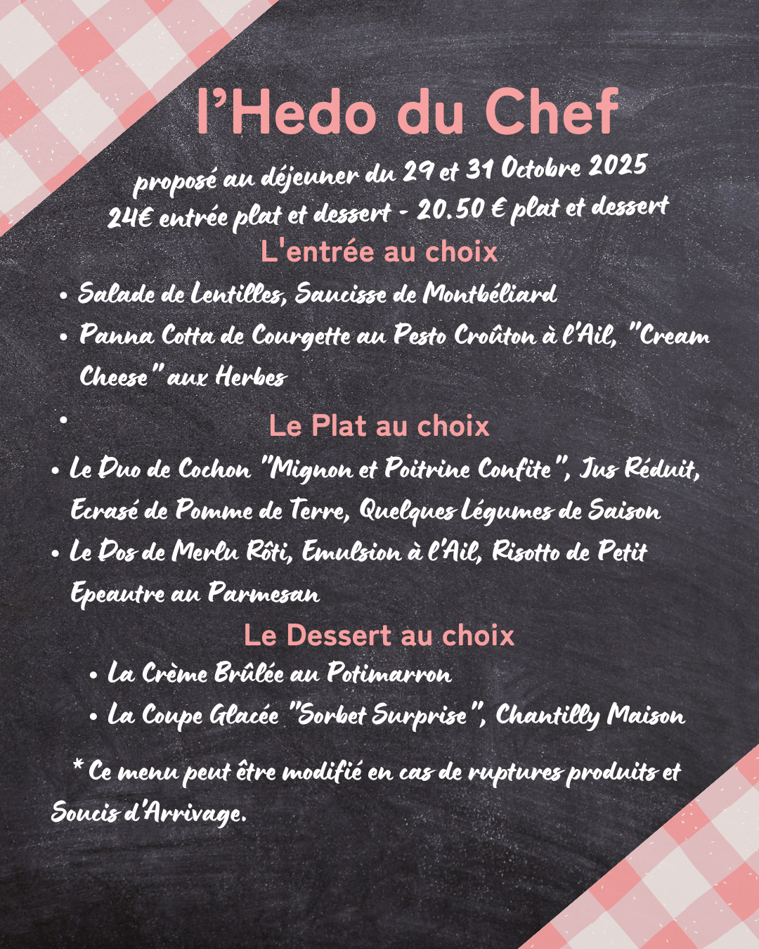 --- Au Bistrot L'Hebdo du CHEF à 24 € (Entrée, Plat et dessert) au déjeuner du mercredi au vendredi ---