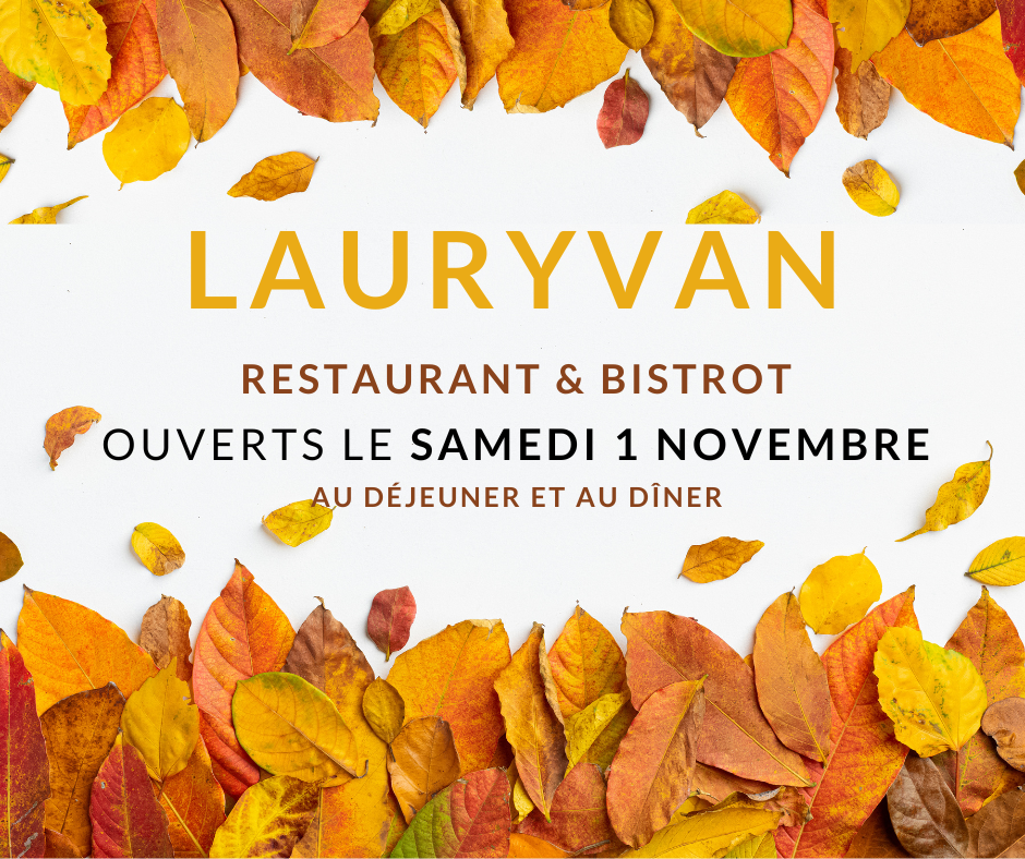 Le Restaurant et le Bistrot seront ouverts le Samedi 1er NOVEMBRE 2025