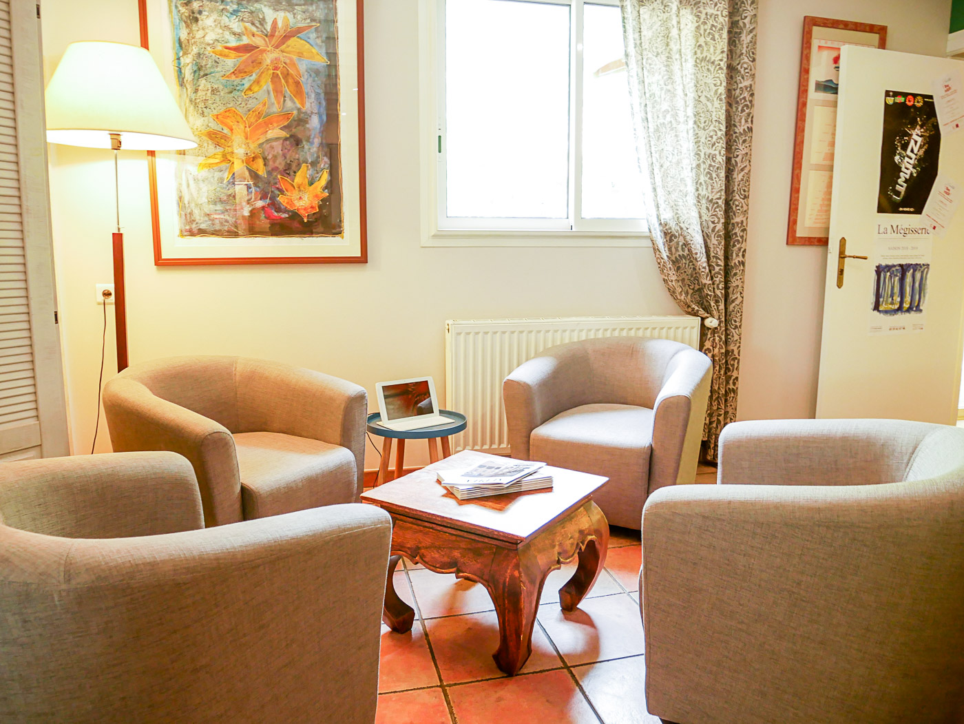 Un espace détente, à l’entresol, est aménagé pour accueillir ceux qui le souhaitent à l’écart de la salle principale.